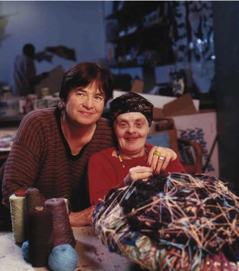 I bring this up because of the origins of the artist we’re speaking about today. In many ways, Judith Scott’s story begins and ends with sisterhood. I’m not surprised that one of the first pictures I found of her was of her hugging her sister. It completes the story.